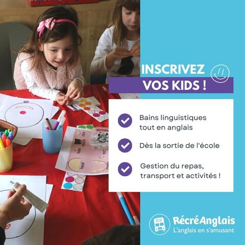 Dès la sortie de l'école, pour la pause déjeuner ou pour le goûter, votre formatrice RécréAnglais récupère vos enfants par petits groupes et se charge de tout, en anglais : gestion du transport, des repas et de toutes les activités !