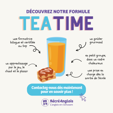 🍏 En Tea time, le mercredi après-midi, de 16h30 à 18h30 pour les élèves de 4 à 6 ans.