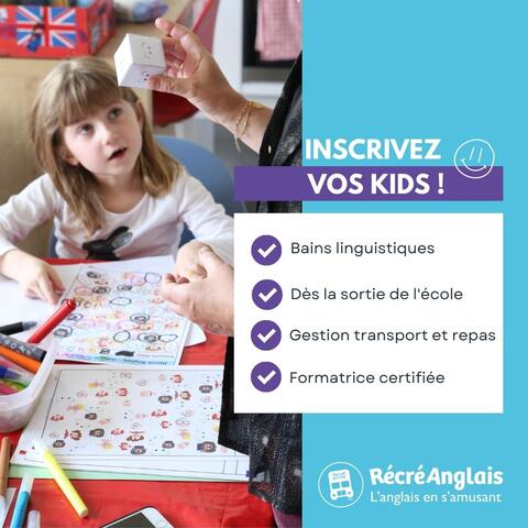 Dès la sortie de l'école, pour la pause déjeuner ou pour le goûter, votre formatrice RécréAnglais récupère vos enfants par petits groupes et se charge de tout, tout en anglais : gestion du transport, des repas et de toutes les activités !